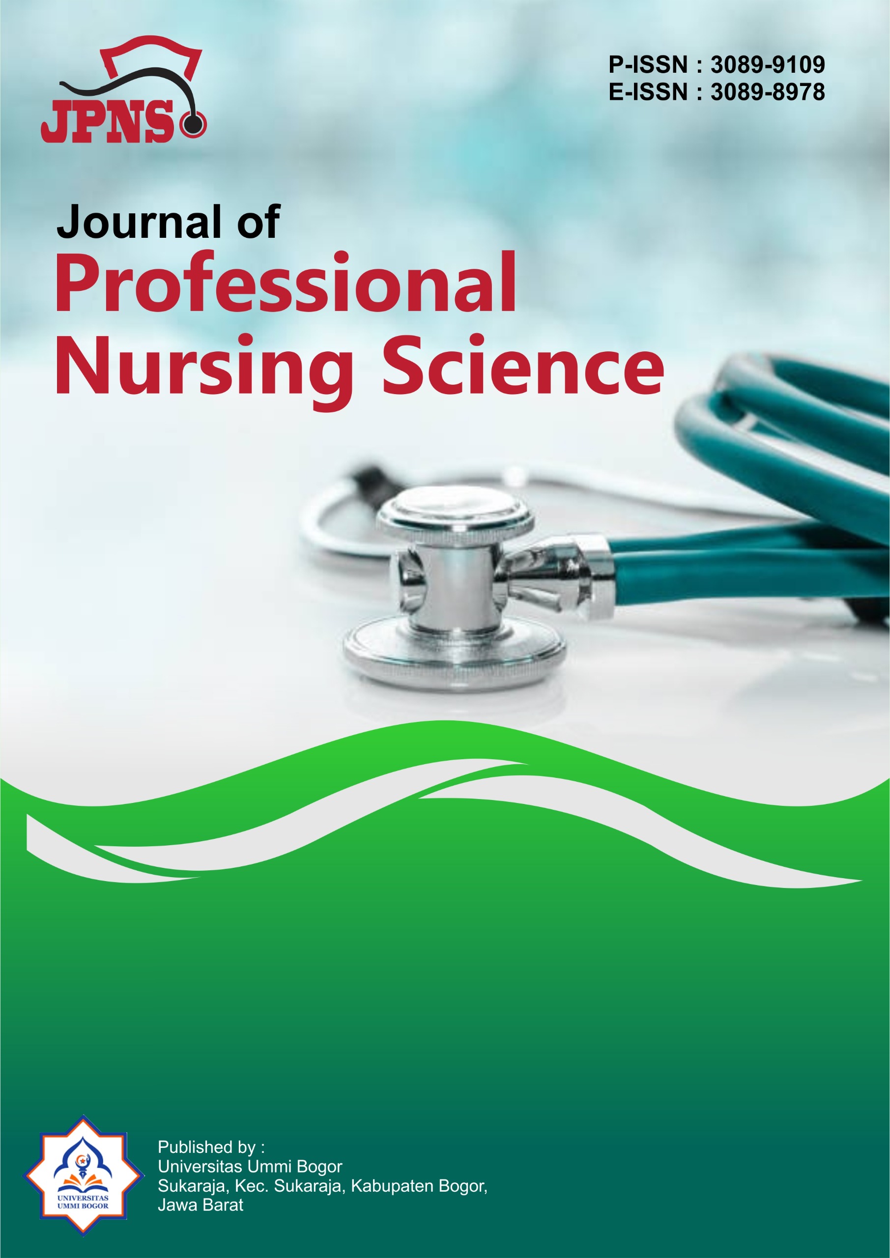 Journal of Professional Nursing Science (JPNS) : this journal intended to publish scientific articles published by Ummi Bogor University and published twice a year, namely April and October Journal of Professional Nursing Science (JPNS) is a Nursing journal that is expected to show the wider community the wealth of knowledge covering various fields of Nursing Science. A scientific discipline that studies nursing care to improve, maintain, and restore the health of individuals, families, and communities. This science involves various knowledge, skills, and attitudes that are applied in providing holistic and professional health services. Nursing not only focuses on physical recovery but also includes the patient's psychological, social, and spiritual aspects. Nurses act as liaisons between patients and the rest of the medical team and provide emotional support and education to improve the patient's quality of life. Apart from that, nursing science also includes research, development of evidence-based practice, health management, and public education for disease prevention. Nursing plays an important role in various settings, such as hospitals, health centers, and clinics, as well as in public health and health promotion programs. Articles can be written in English or Indonesian.